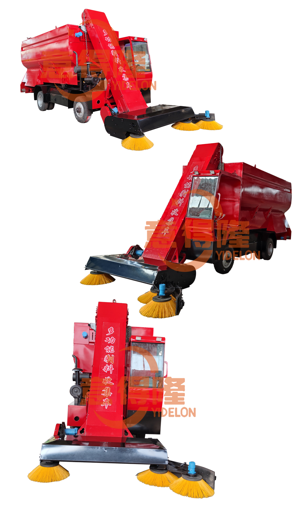 2、采用自動(dòng)液壓控制系統(tǒng),前方的刮板,滾刷能夠徹底的把剩料收集到車箱。